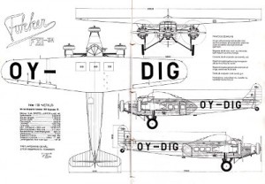 This trimotor aircraft was designed by the Fokker factory in Holland. Only 13 were built, two of these under license in Denmark by Orlogsværftet in Copenhagen. The Danish F.XII’s were build during 1933, with minor modifications requested by the customer, Det Danske Luftfartselskab. The aircraft entered service the day after the test flights were completed!