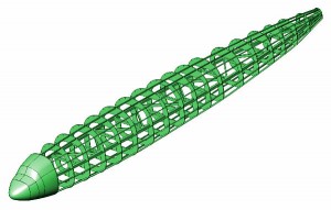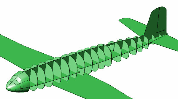 I am working on the wings (well the left one – I only make one, since the right is a mirror copy). Unfortunately I messed up the wing profile, so have started from scratch again.