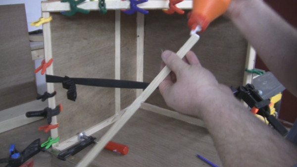 I then glued it all together, as per the CAD plans. I had some trouble holding it all in place. Since my compressor is out of order, I could not use the brad-nailer to hold the wood in place while the glue was drying. I fixed the problem with a couple of screws.